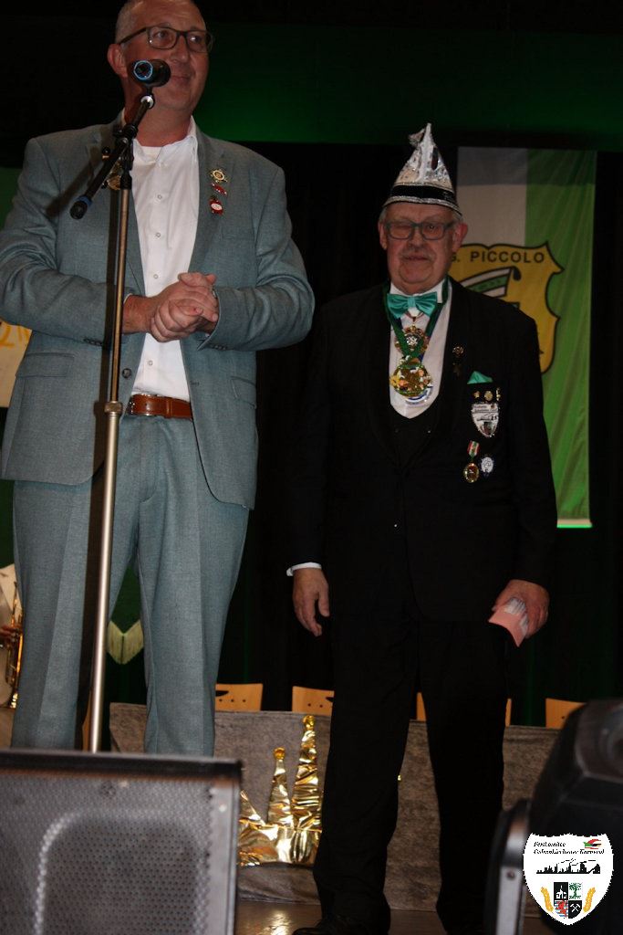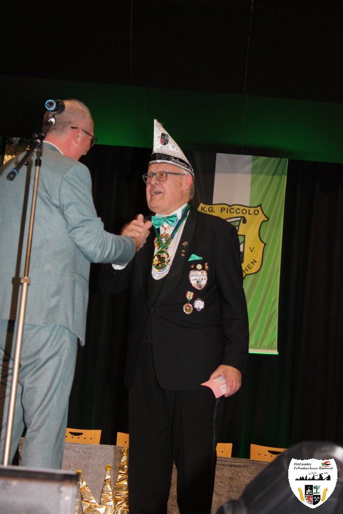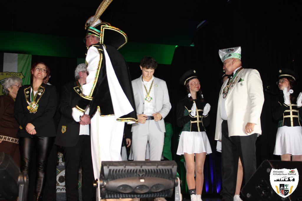Ein herrliches Ereignis nicht nur für Karnevalisten, die Proklamation des neuen Prinzenpaares am 22. November 2025! Der Präsident der KG Piccolo 1951 e.V., Stefan Bungardt, begrüßte in der gut besuchten Aula der Gesamtschule in Erle die erwartungsvolle Gästeschar. Ein großer Wunsch des Präsidenten war Hans-Georg Schweinsberg, ehemaliger Sitzungspräsident des Festkomitees, als Moderator der Sitzung zu gewinnen, was mit Erfolg gekrönt wurde. Als Dank erhielt Hans-Georg Schweinsberg den ersten Prinzenorden der Veranstaltung. Fortan übernahm er das Mikrofon und die Leitung der Prinzenproklamation.