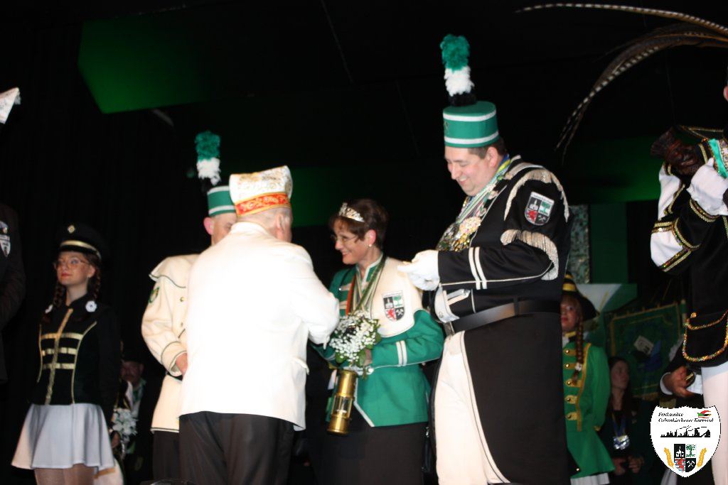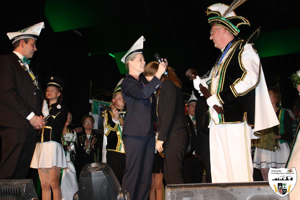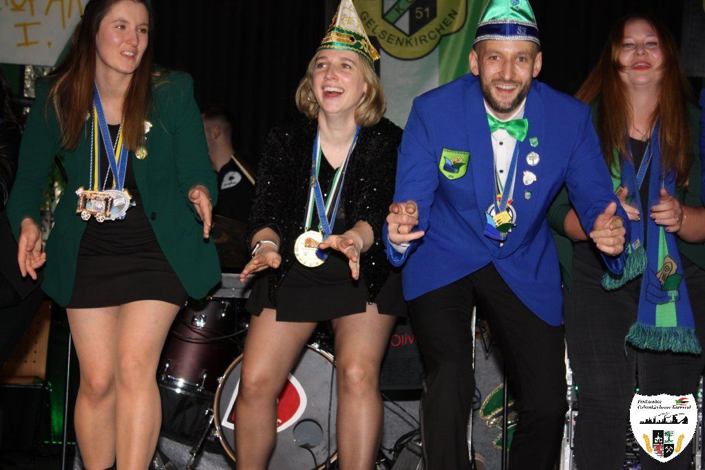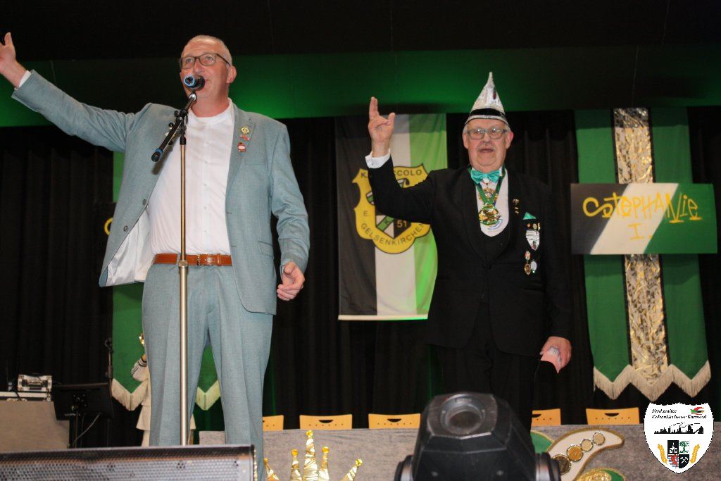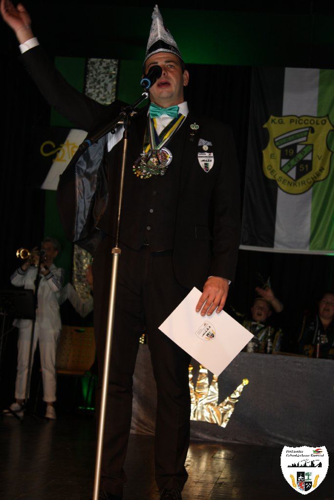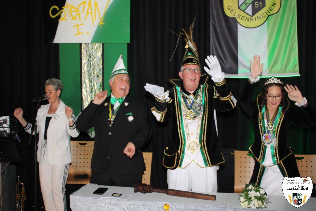 Der nächste Höhepunkt des Abends kam. Die Proklamation der neuen Gelsenkirchener Stadtprinzenpaares der Session 2025/2026. Moderiert wurde die Festlichkeit vom Sitzungspräsidenten des Festkomitees Gelsenkirchener Karnevals, Dennis Bittermann. Die Spannung stieg. Mit großem Einzug der Gelsenkirchener Karnevalsgesellschaften zogen das neue Stadtprinzenpaar Prinz Stefan I. und ihre Lieblichkeit Prinzessin Stephanie I. mit Hofstaat feierlich in den Saal ein. Aus den Händen der neuen Oberbürgermeisterin Andrea Henze erhielt Prinz Stefan I. die Tatsche und die historische Amtskette. Auch der Bund-Ruhr Karneval (BRK), vertreten durch den Präsidenten Lothar Schwarze, gratulierte dem neuen Stadtprinzenpaar. Björn Tondorf, der Präsident des Festkomitees Gelsenkirchener Karneval, beglückwünschte dem frischgebackenen Prinzenpaar zur anstehenden Session. In seiner Antrittsrede stimmte das Prinzenpaar alle Gäste des Hauses auf ihre Regentschaft ein. Nach der Verleihung der obligatorischen Orden zeigte die Prinzengarde, gestellt von der KG Piccolo, ihren Prinzentanz. Musikalisch präsentierten Thorsten Pasucha und Jessica Tondorf den Gästen ihr Mottolied des Gelsenkirchener Karnevals "Von der Emscher bis zum Rhein - Karneval lädt alle ein ". Es folgte der Showtanz der Fidelen Sandhasen aus Troisdorf. Ein Genuss diesem atemberaubenden Tanzcorps zuzuschauen. Ordentlich Mukke machte anschließend die Gruppe "Dörmarka" aus Emmerich. Die Mädels waren anschließend kaum an der Bühne zu halten als die Energiebündel der KG Narrenzunft auftraten und das Publikum begeisterte. Die Begeisterung nahm kein Ende als Ina Colada die Stimmung zum Brodeln brachte. Hier ging noch einmal richtig die Post ab. Mit großer Begeisterung ging es dem Ende der Proklamation entgegen. Nicht zu vergessen ist die Showtime Company mit Ute und Oliver Roth, die den ganzen Abend für eine absolute Stimmung sorgten. Es war mehr als nur die Prinzenproklamation, es war Party pur!