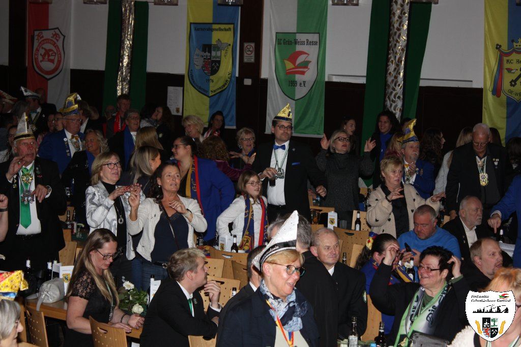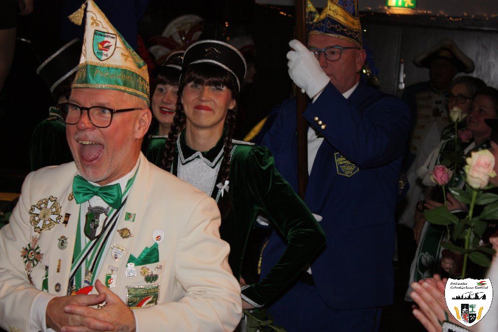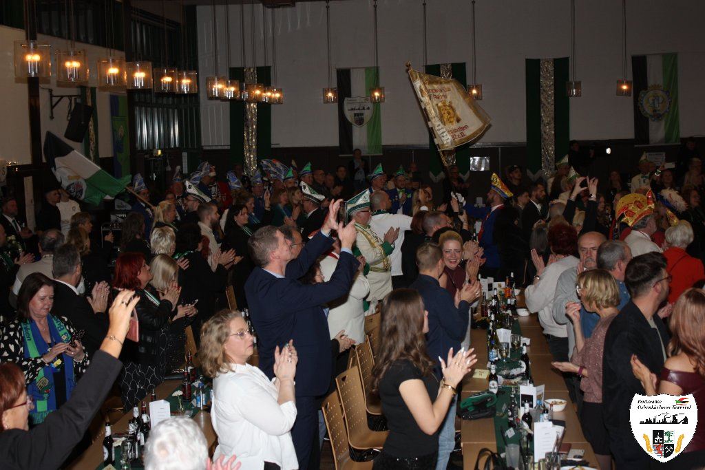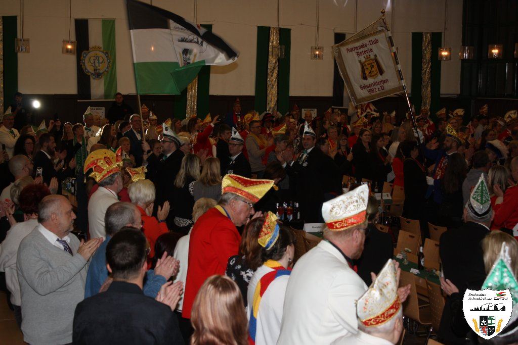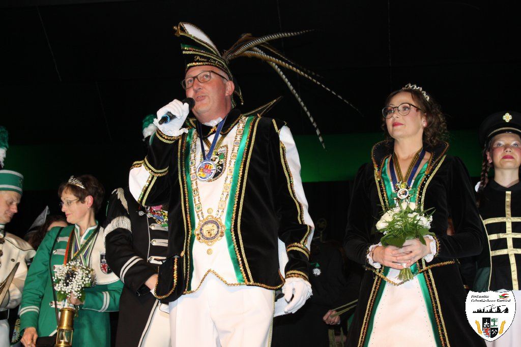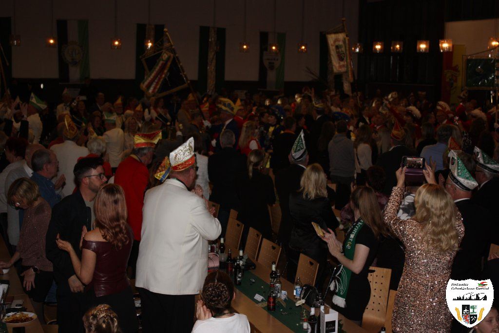Mit großem Einmarsch der Gesellschaften des Gelsenkirchener Karnevals erstrahlte für die Narrenschar der Glanz der närrischen Jahreszeit. Sicherlich ein etwas schmerzlicher Abend für den scheidenden Stadtprinzen Dominic I., der unsere Heimatstadt Gelsenkirchen hervorragend in der Session 2024/2025 vertreten hat. Die Tollitäten begrüßten die große Gästeschar. Darauf präsentierten die Prinzengarden ihre Tänze. Der Showtanz der Hypnotix aus dem hessischen Gaudernbach faszinierte die Gäste. Doch dann musste der scheidende Prinz Dominic I. seine Insignien ablegen. Mit Wehmut und einem letzten Helau verabschiedeten sich die Tollitäten von ihrem Publikum. In seiner Abschiedsrede dankte der scheidende Prinz den Gelsenkirchener Narren. Die Gäste beantworteten dieses den Tollitäten gegenüber mit donnerndem Applaus.